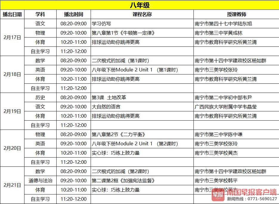 附:广西中小学“空中课堂”优秀课例播出课程表(2.17~2.21)