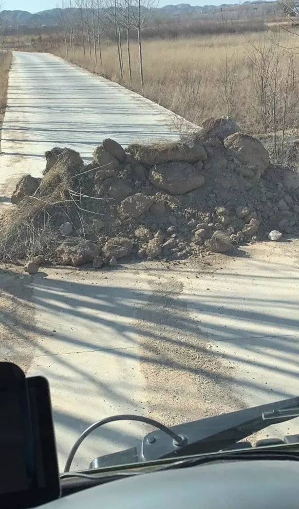 当天下午14时48分,消防车途径尖山庙村,遇到村里土堆封路。由于道路只此一条,消防员果断下车用铁掀快速清理。15时01分,路障清理完毕。