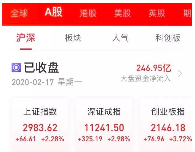 2月17日早盘,三大指数悉数高开高走。截至收盘,沪指涨2.28%,深证成指涨2.98%,创业板指涨3.72%创3年新高。两市超过3600只个股飘红,其中182只个股涨停。