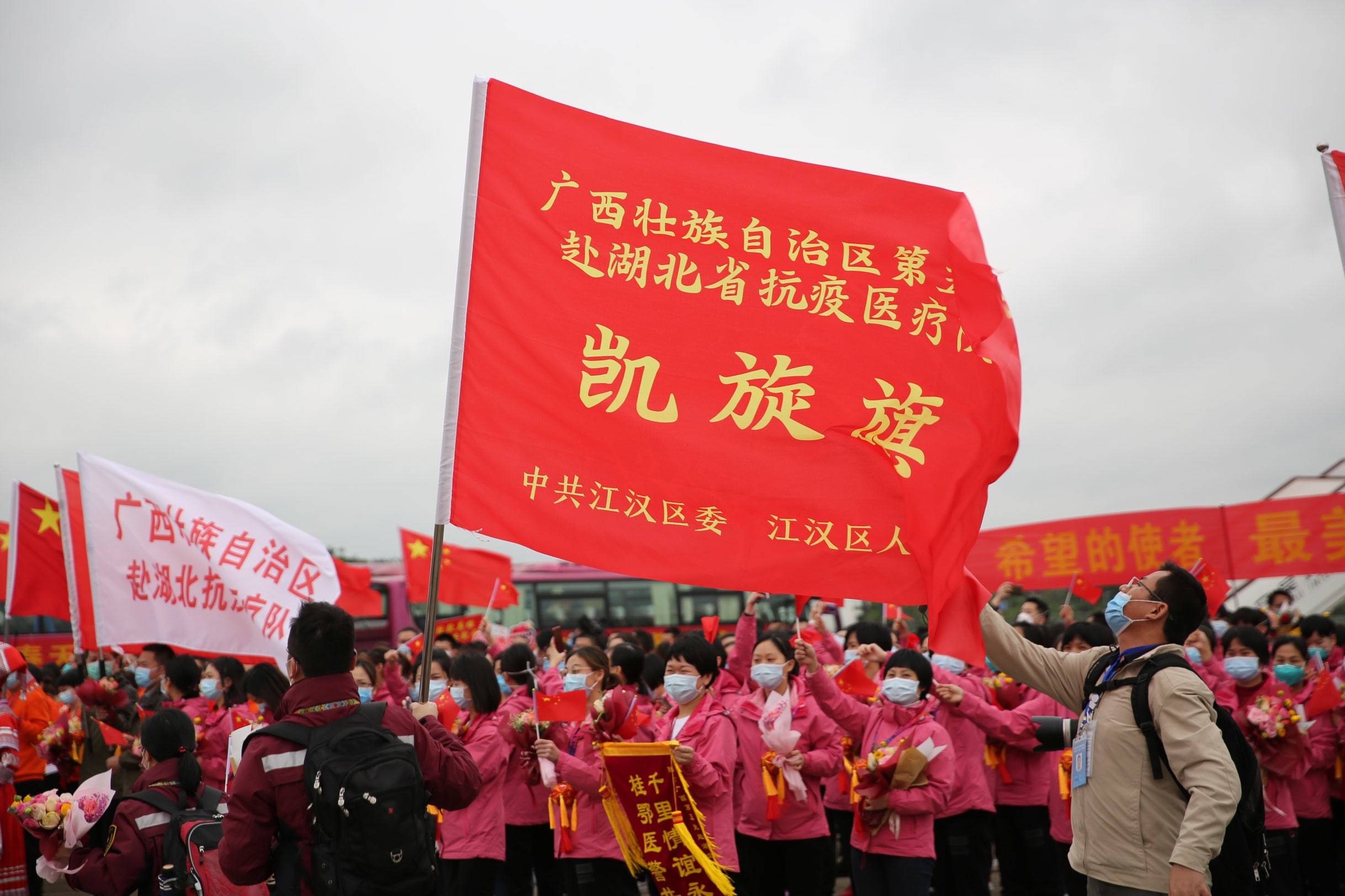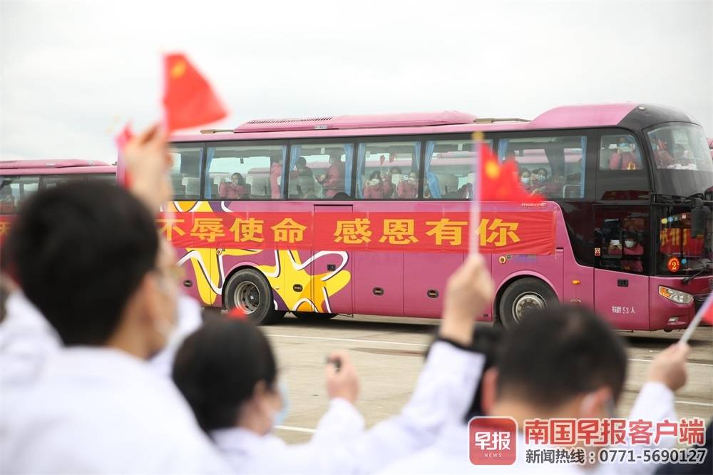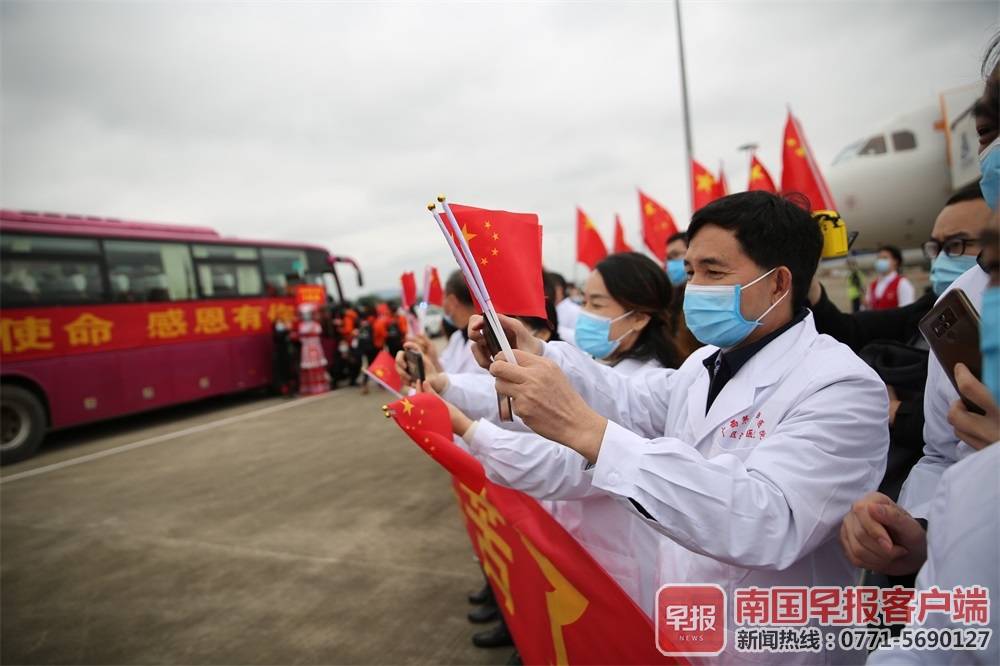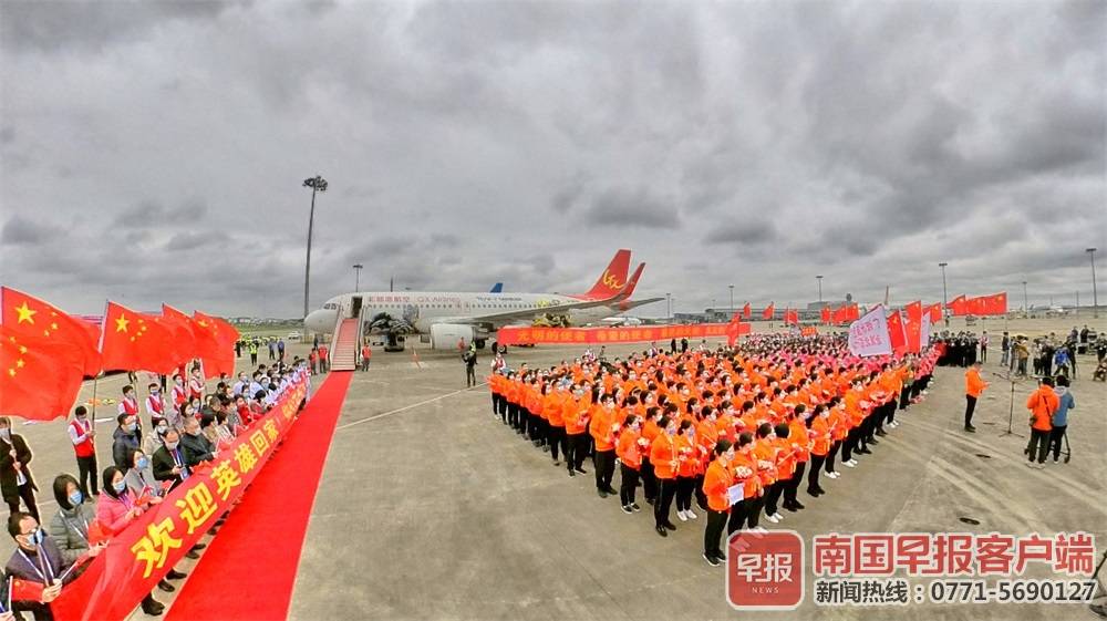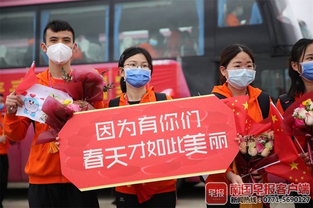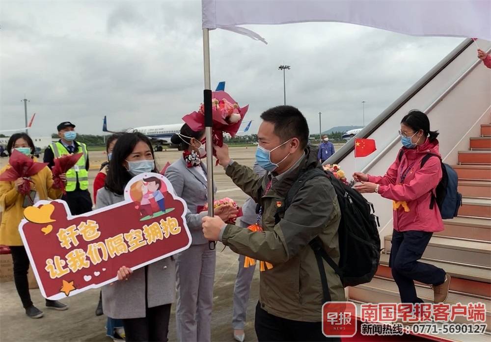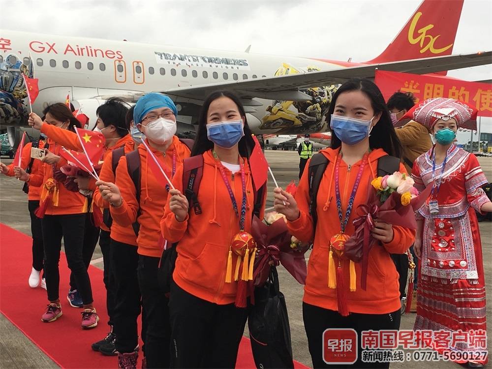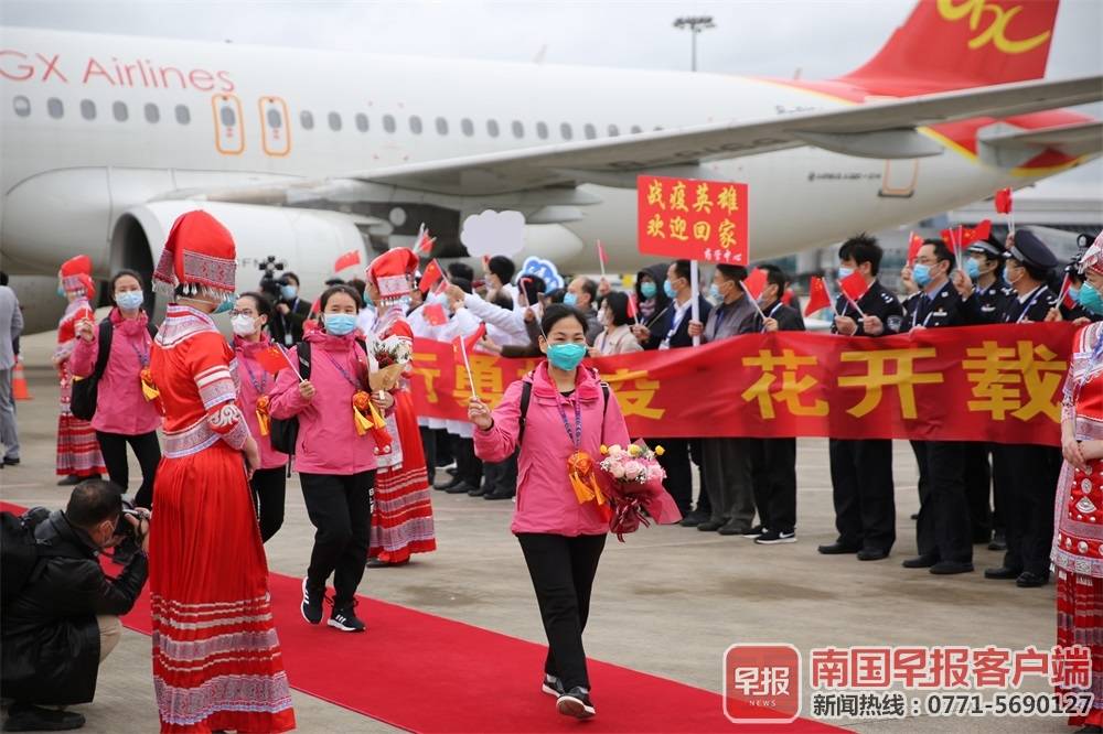 白衣执甲,载誉而归。3月31日上午,广西最后两批援助湖北抗疫医疗队276名队员圆满完成任务,依次乘坐海航集团旗下的北部湾航空的2架飞机,从武汉平安返回家乡。截至目前,除26名疾控人员继续坚守在湖北一线开展疾病防控工作外,其余广西援助湖北抗疫医疗队员已全部返回。