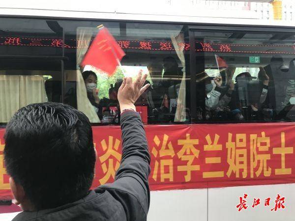 3月31日上午9时许,中国工程院院士、国家卫健委高级别专家组成员李兰娟团队一行10人,踏上返程之路。东湖高新区、武汉大学人民医院为其举行了简单而隆重的欢送仪式。