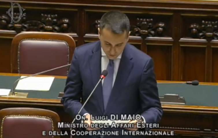 ▲意大利外长迪马约在众议院接受问询。