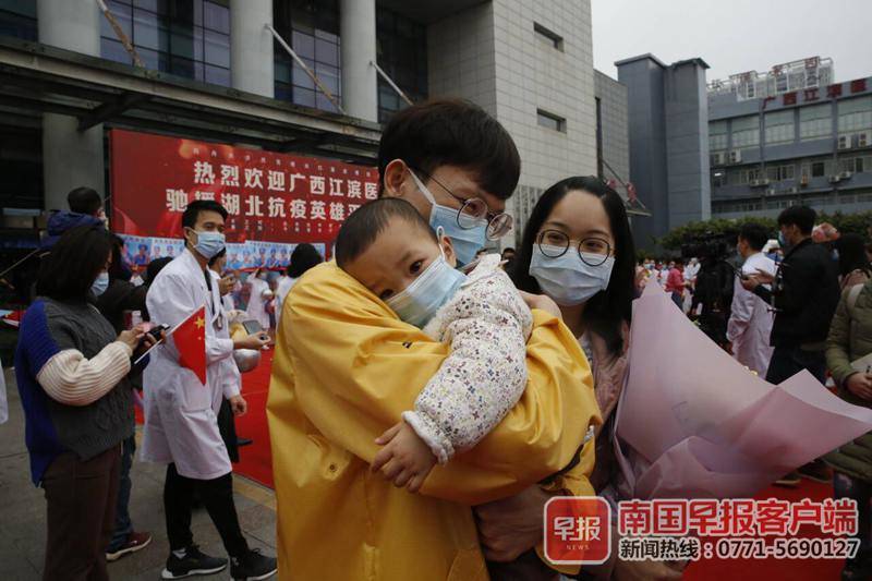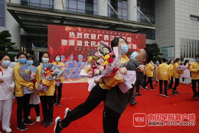 4月1日下午,广西支援湖北省抗疫医疗队首批返回的队员正式结束14天的集中休整。大家背起行囊,搭上回家的车,与阔别两月有余的家人、同事和朋友深情相拥。