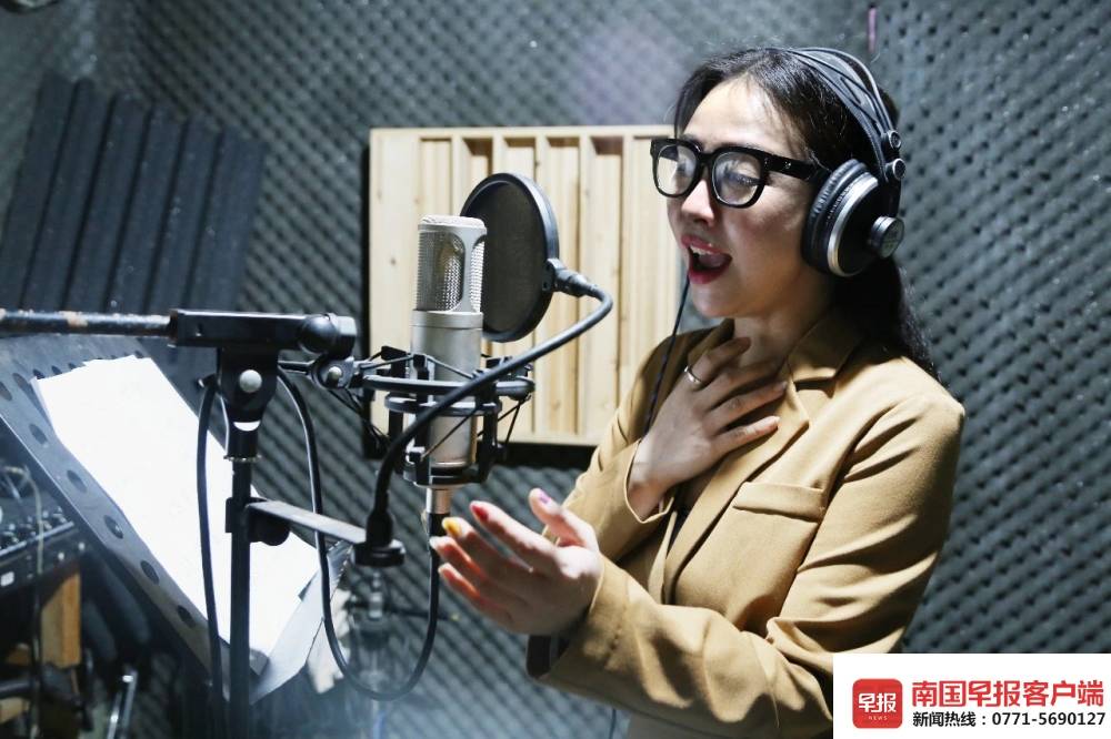 ▲哈丹录制歌曲中。广西戏剧院供图