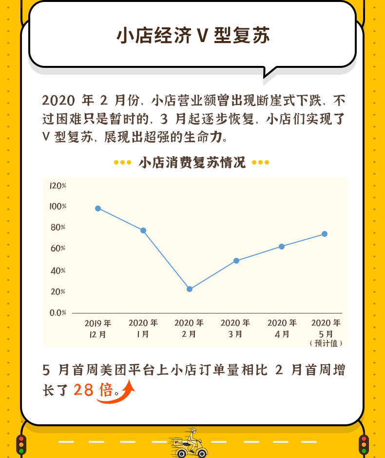 美团《小店报告》显示,2020年2月份,小店营业额曾出现断崖式下跌,不过困难只是暂时的,3月起逐步恢复,到5月份,小店们实现了V型复苏。
