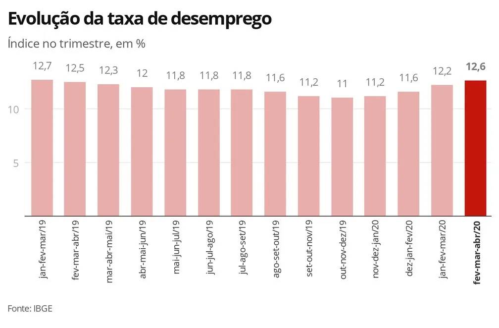 巴西经济部下属的地理与统计研究所28日公布的报告数据显示,从今年2月起的三个月里,巴西新增失业人数490万,截至4月底,全国失业人数累计达1280万,失业率达到12.6%,是从去年3月以来失业率的最高点。分析认为,新冠肺炎疫情是导致当前失业率猛增的主要原因。
