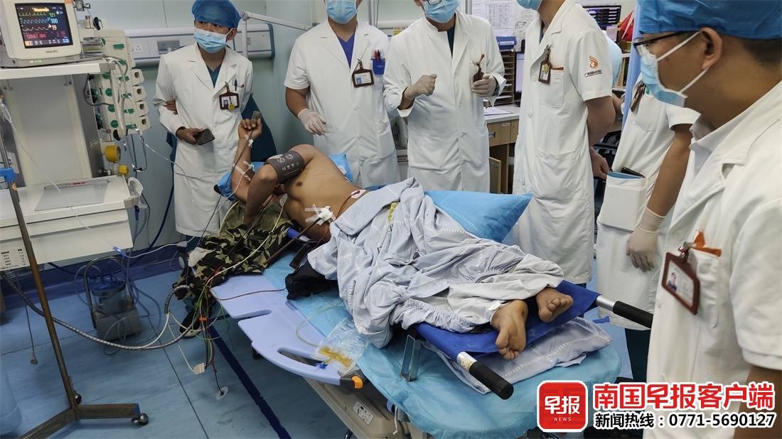 7月23日上午8时许,广西国际壮医医院收治一名腹部被钢筋刺穿的伤员。由于伤员身上滞留的钢筋过长,无法进行手术。危急时刻,消防员赶到,耗时10分钟,成功切除钢筋。