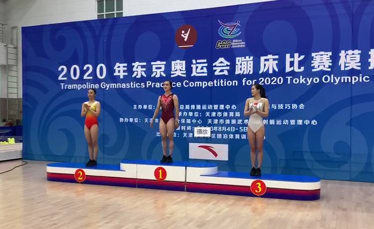 中国蹦床队4日在天津举行了东京奥运会蹦床比赛模拟赛,“00后”小将林倩麒夺得女子网上个人决赛冠军,朱雪莹、刘灵玲分列第二、三位。