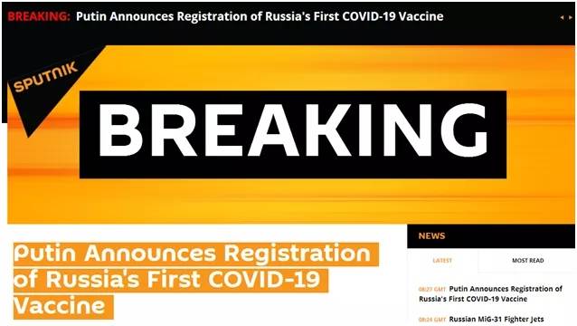 ▲俄卫星社快讯称普京宣布俄罗斯首支新冠疫苗已注册。