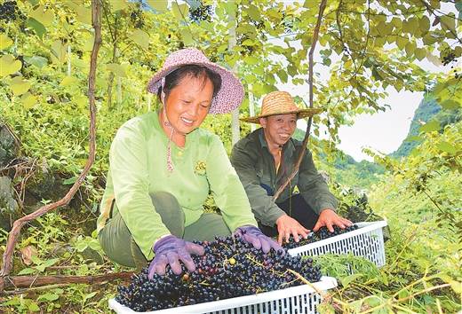▲图为贫困种植户在给客户采摘毛葡萄。广西日报记者 廖庆凌 通讯员 韦明崧/摄