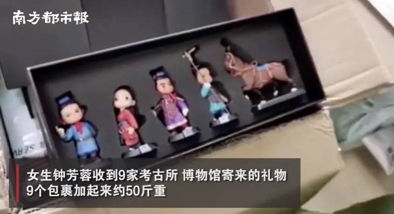 8月20日,钟芳蓉收到了来自9家考古研究机构寄来的礼物,9个包裹重量近50斤,大大小小的包裹堆满了桌子。钟芳蓉的父亲告诉记者,收到礼物后女儿并没有表现出特别激动,“她一直是这样,什么事都是这样的。”据钟先生介绍,目前礼物都已搬到女儿的房间中。