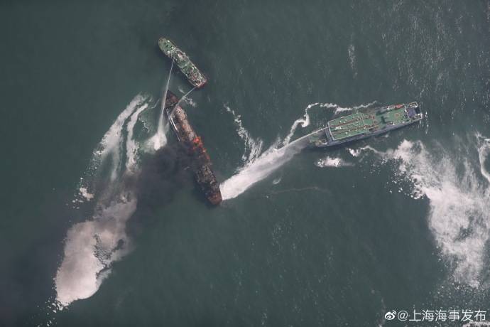 1037时,“东海救101”轮拖带事发油船前往安全水域,“海港12”、“东雷12”伴航。