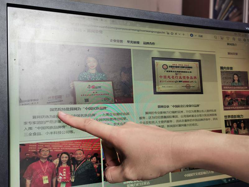 “国务院特批中国民族品牌”“世界级影响力”“CCTV合作伙伴”……南宁一家公司开设一个名为“算网”的网站,拉上“大旗”为自己做宣传,主营业务是为他人起名、改名及销售“转运”饰品。8月25日,南宁市场监管部门对该公司进行检查,初步调查取证后,认为其涉嫌违反《广告法》,并存在宣传封建迷信的行为。