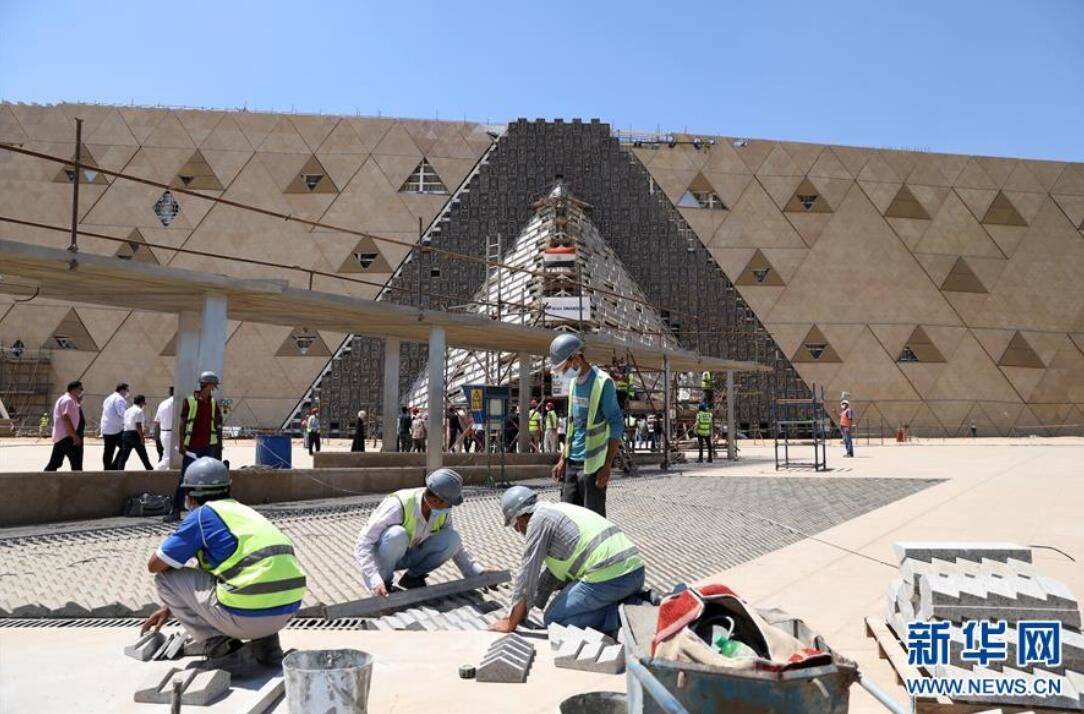 工人们在埃及吉萨大埃及博物馆的建筑工地工作。新华社发(艾哈迈德·戈马摄)