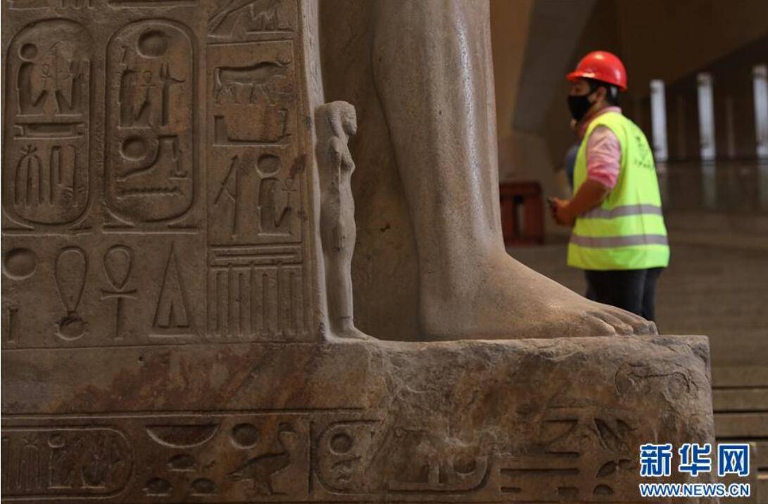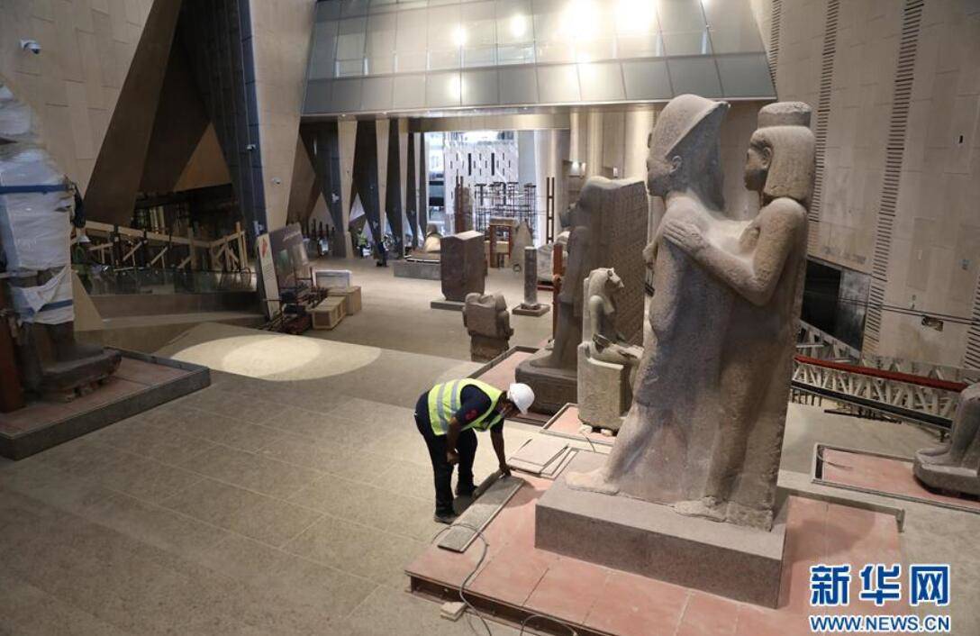 一名工人在埃及吉萨大埃及博物馆的建筑工地工作。新华社发(艾哈迈德·戈马摄)