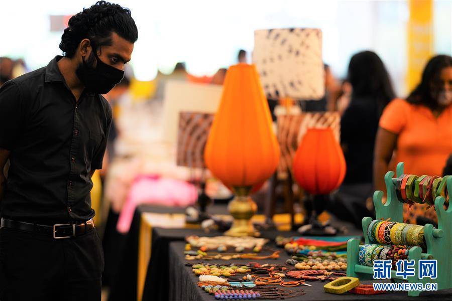 人们在斯里兰卡首都科伦坡的“锡兰工匠网络周末集市”上购物。新华社记者 唐璐 摄