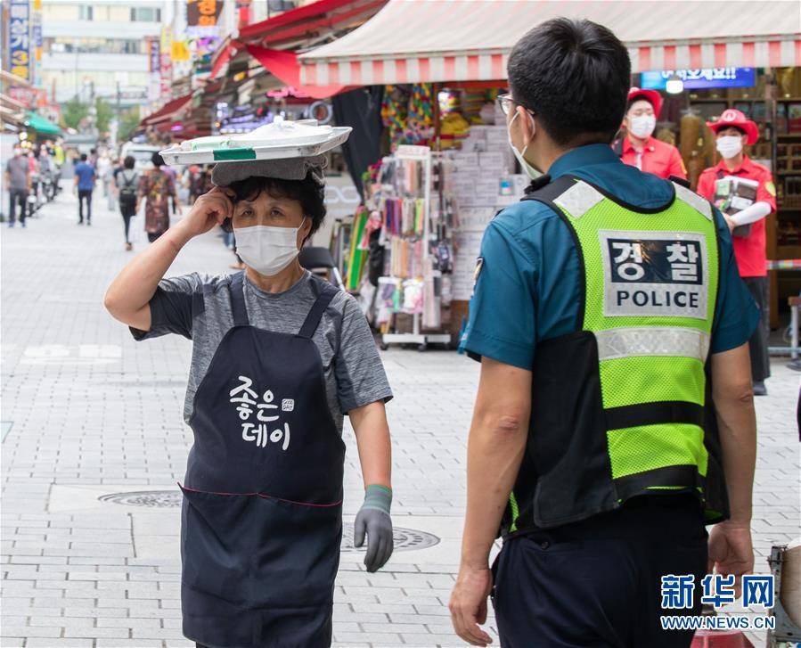 商家戴着口罩做生意。新华社发(李相浩摄)