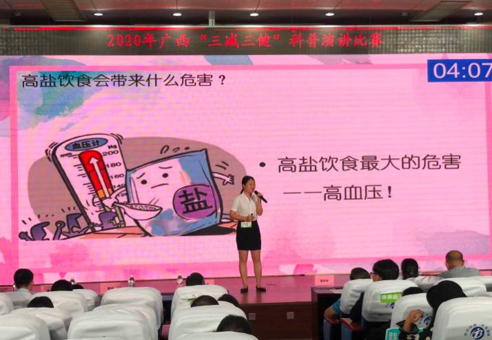 “高盐饮食会带来什么危害?”“保持健康的体重有多重要?”9月25日,自治区疾病预防控制中心举办2020年广西“三减三健”科普演讲比赛和“三减三健”PPT制作比赛,14个市疾病预防控制中心参赛,跟大家倡导健康生活方式。