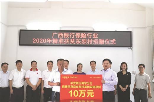 平安银行南宁分行向河池市巴马瑶族自治县那社乡东烈村捐赠10万元用于建设达良屯道路硬化项目。
