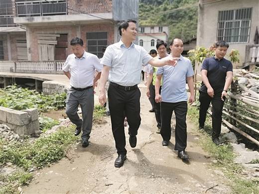 中国人寿广西分公司主要负责人陈小尤(左二)在天等县进远乡进远村开展扶贫调研工作。邹佳伟摄