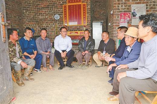 北部湾保险党委书记、董事长黄英钊(左四)到百色市田林县者达村贫困户家里慰问。 赵俊摄