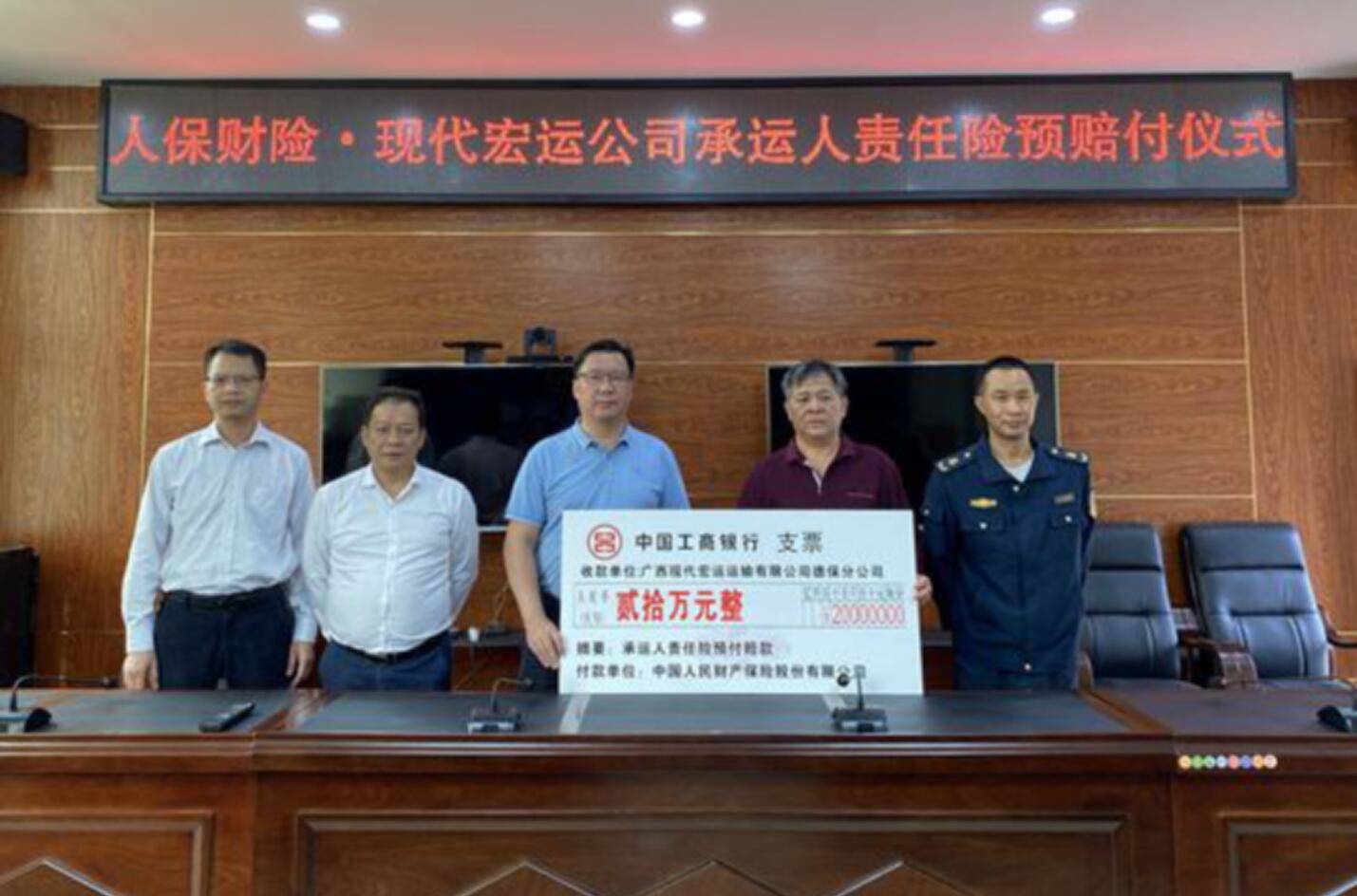 9月30日,人保财险百色分公司向广西现代宏运运输有限公司德保分公司预付赔款20万元,并积极协助宏运公司安抚事故受难家属,及时处理赔偿事宜,有效缓解了客户的燃眉之急。快捷、高效、有温度的服务,赢得了客户的好评。