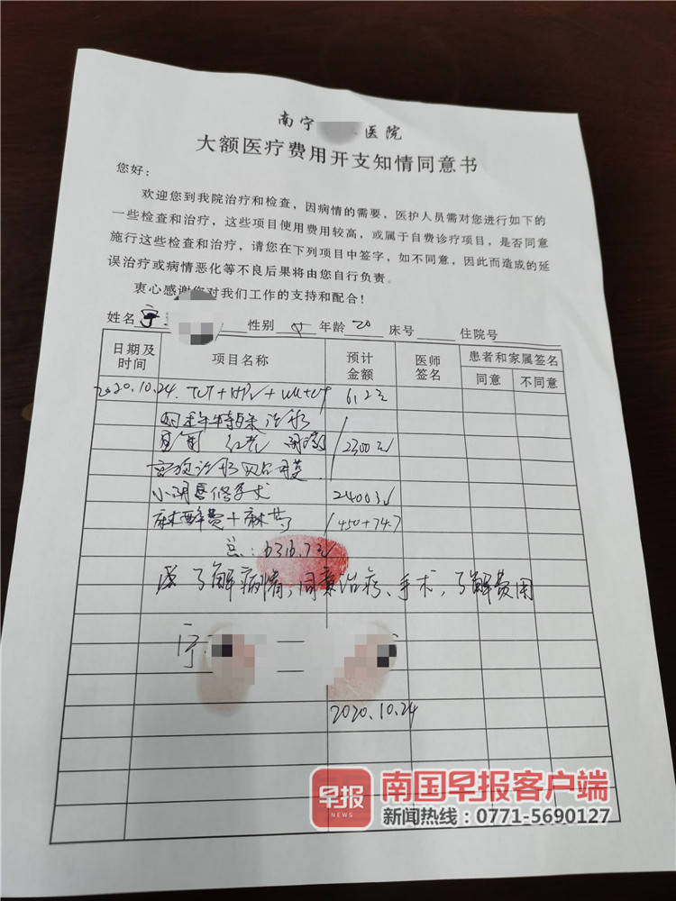 ▲小宁手术前,签署的知情同意书。南国早报客户端记者 颜强摄