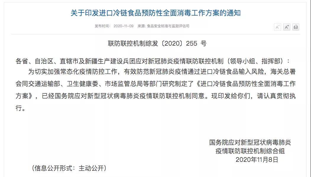 日前,国务院联防联控机制印发进口冷链食品预防性全面消毒工作方案。方案要求,实现全流程闭环管控可追溯,最大程度降低新冠病毒通过进口冷链食品输入风险。在进口冷链食品首次与我境内人员接触前实施预防性全面消毒处理。