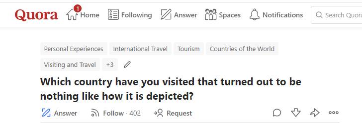 最近,在美版“知乎”Quora上这样一个提问火了:你去过的国家里,有哪个是与之前听到的描述完全不一样的?