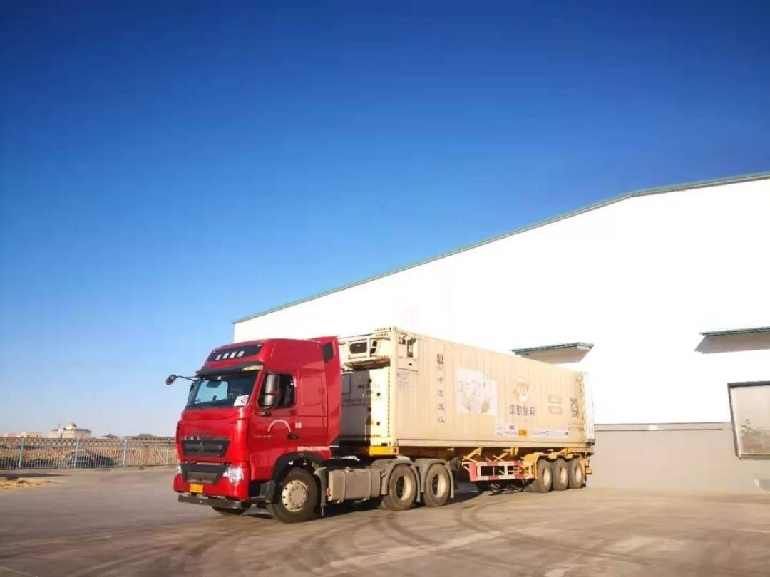上午10时,10台集装箱冷链车排列整齐,缓缓驶出内蒙古二连浩特市隔离区,启运回湖北。