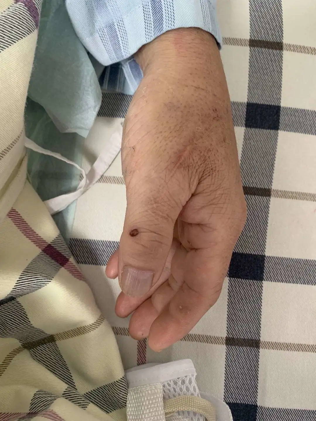 接诊的广东三九脑科医院神经内二科包泽岩主治医师为患者查体时,发现他左手拇指上有一个黄豆大小的伤口。考虑到患者有生猪肉接触史,且脑膜刺激征为阳性,医生初步诊断是猪链球菌感染导致的脑膜炎。最终,在患者的脑脊液中找到了猪链球菌,进一步证实了包泽岩的诊断。