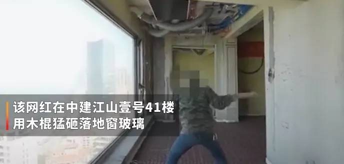 11月11日,一段网红猛砸落地窗的视频走红网络,引起网友争议。据了解,砸玻璃的男子是一名网红,拍摄地点位于湖南长沙中建江山壹号41层,玻璃宽5米,重达两千斤,要二十来人才能移动它。