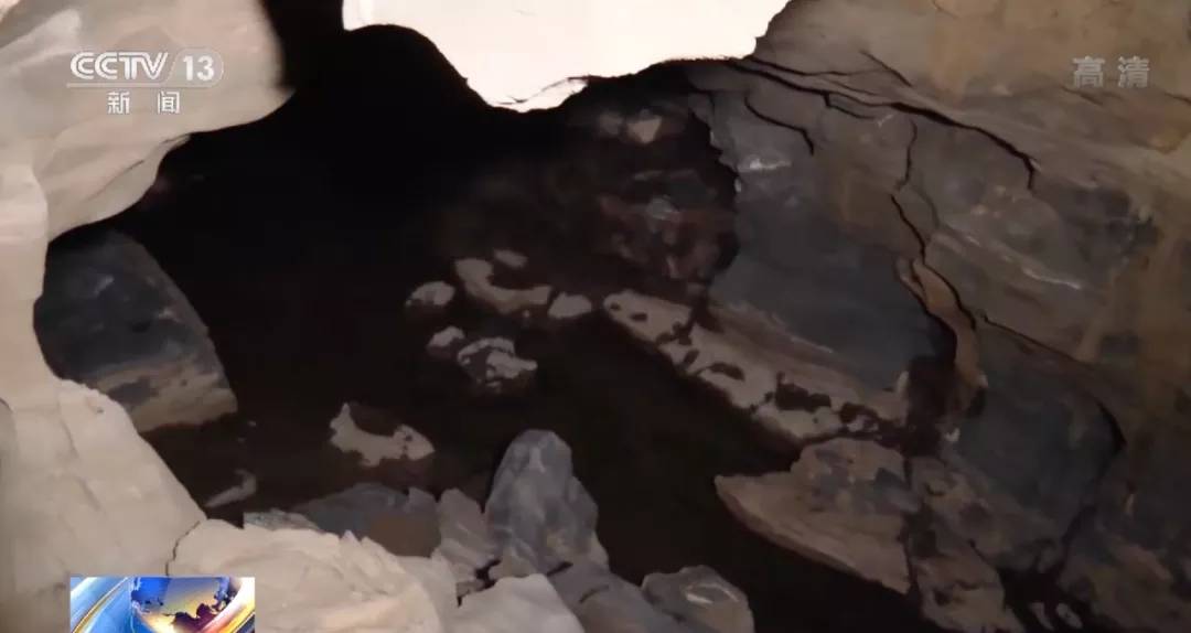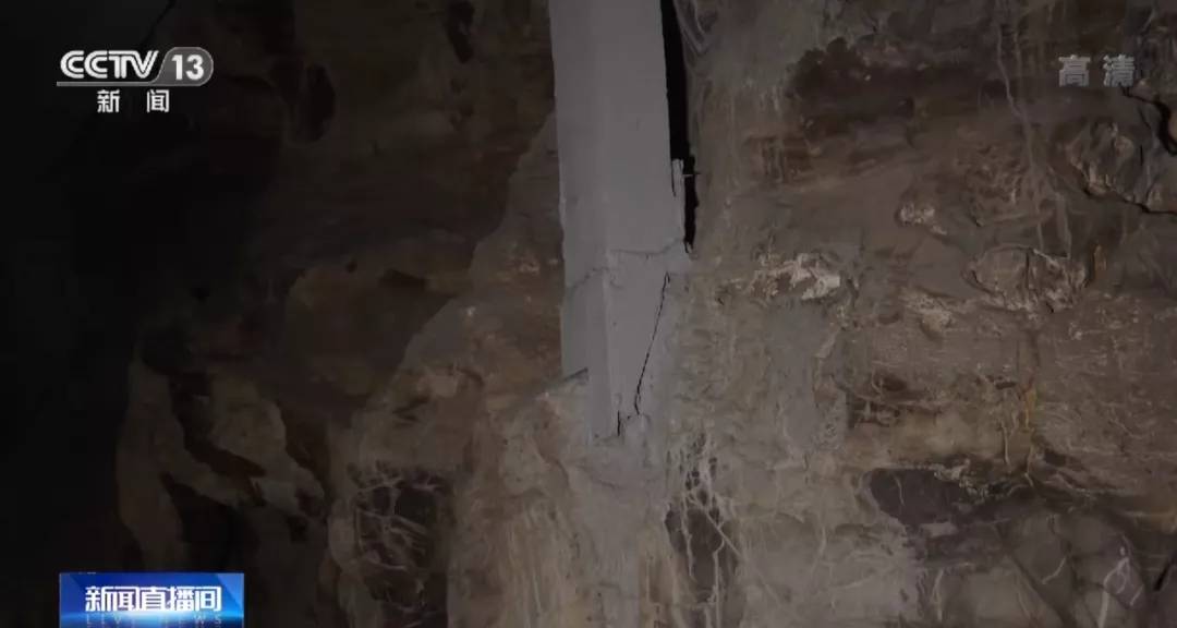 在该天然溶洞内部,总台央视记者看到一些水泥柱直插进岩体,岩壁上有明显被破坏的痕迹,洞内通道上方的几根钟乳石也被拦腰切断。