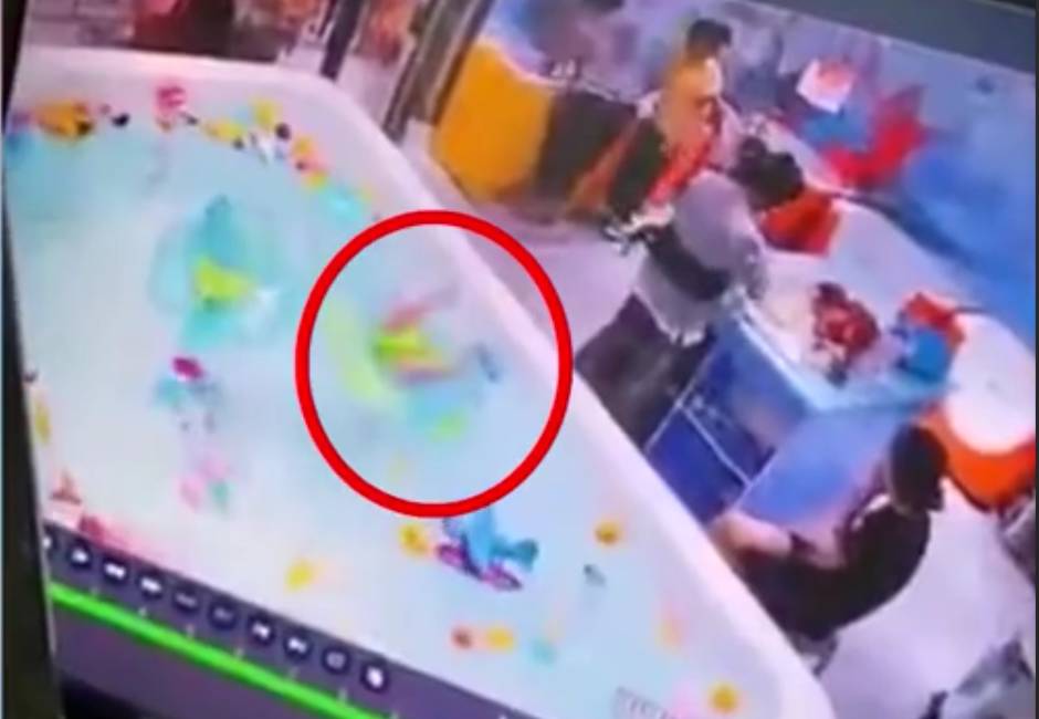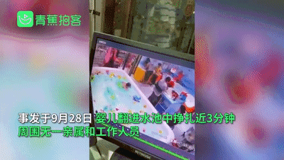 一婴儿在游泳馆游泳,在无人看护的情况下,身体脱离游泳圈,在水池中挣扎近3分钟。