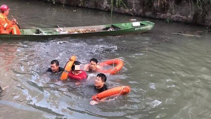 接警后,民警沈建欢带领辅警队员第一时间赶到现场,看到落水女子整个人都泡在水里。此时女子身旁刚好有一条河道清理船,船上的环卫工人正在对落水女子进行施救,但女子并没有理睬,也没有做出任何呼救的举动。