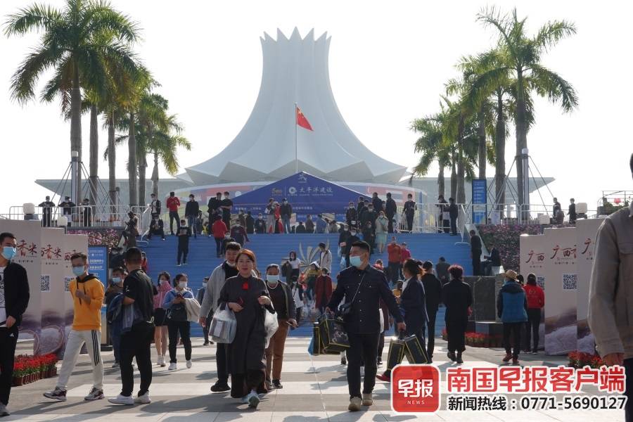 ▲11月30日下午3时许,市民提着大包小包从南宁国际会展中心走出。南国早报客户端记者 邹财麟摄